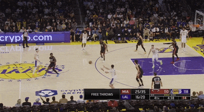 半場戰(zhàn)罷,湖人連續(xù)兩節(jié)凈勝7分,以77-63領(lǐng)先熱火。