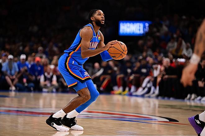 本場(chǎng)比賽中,雷霆的替補(bǔ)外線投射以賽亞-喬(Isaiah Joe)依然是保持了極好的手感。喬全場(chǎng)出場(chǎng)21分25秒,投籃12中7,三分線外10中6,罰球2中2,以超高的效率拿下了全隊(duì)第二高分22分外加3籃板的數(shù)據(jù),還有1次失誤和2次犯規(guī),正負(fù)值為+7。喬在比賽中將自己超強(qiáng)的投射能力發(fā)揮了出來(lái),他在與謝伊-吉爾杰斯·亞歷山大(Shai Gilgeous-Alexander)完成擋拆后可以利用后者的防守吸引力為自己爭(zhēng)取到足夠的出手空間,隨后他也能夠利用自己超強(qiáng)的投射能力給對(duì)手制造精準(zhǔn)打擊。喬在場(chǎng)上的效果算得上是相當(dāng)不錯(cuò),他靠著類(lèi)似的方式拿下了大量的分?jǐn)?shù)并且給球隊(duì)在進(jìn)攻端制造了大量的威脅,他的強(qiáng)勢(shì)表現(xiàn)也是為球隊(duì)的勝利做出了自己的貢獻(xiàn)。
