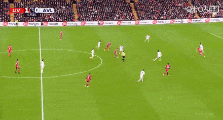 第一分,馬丁內(nèi)斯出球失誤給到了薩拉赫,面對空門薩拉赫選擇了直接起腳??吹某鏊淖孕旁诟崎T數(shù)的提升回歸。這個丟球就是阿斯頓維拉被利物浦高壓逼搶壓制之后,后場出球失誤導(dǎo)致的,在這個圖來對比就可知利物浦壓制的深度了,這在之前幾輪的確是沒有。