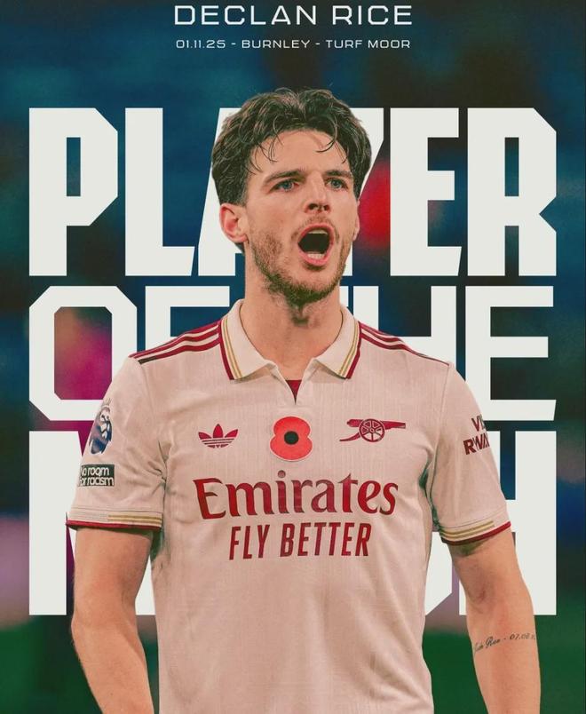 官方:賴斯被評(píng)為了本場(chǎng)比賽最佳球員。