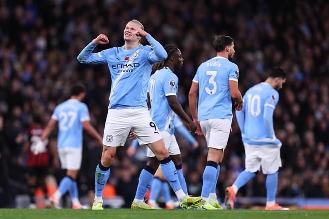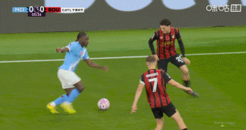 第33分鐘,謝爾基再送助攻,哈蘭德單刀雙響,曼城2-1伯恩茅斯。