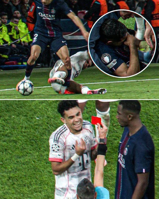 然而或許是情緒過于亢奮,半場補(bǔ)時(shí)第3分鐘,殺得興起的迪亞斯卻在一次拼搶中,直接從背后飛鏟大巴黎的王牌邊后衛(wèi)阿什拉夫。