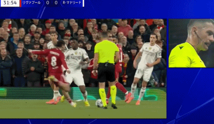 第32分鐘,索博斯洛伊禁區(qū)外勁射,擊中楚阿梅尼的手,利物浦眾將索要點(diǎn)球,但裁判觀(guān)看VAR之后認(rèn)為是球打手,并未判罰點(diǎn)球。
