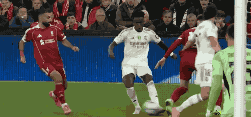 第61分鐘,貝林厄姆身后放倒赫拉芬貝赫,利物浦獲得位置不錯的任意球,索博斯洛伊將球開出,麥卡利斯特?fù)岦c頭球,這一次,庫爾圖瓦無能為力了。